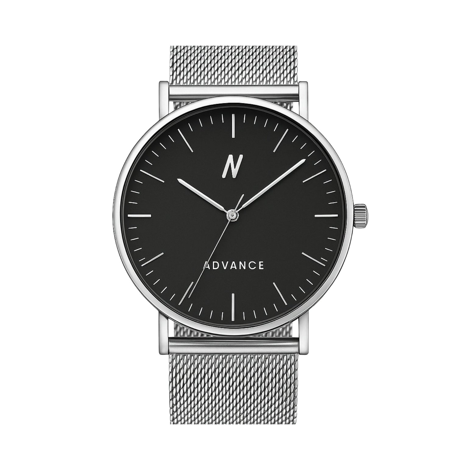 Advance Night Cap Quartz Movement Watch, 40MM In Silver and Black is the timepiece designed to complete your contemporary minimalist look and redefines distinction. This 40MM unisex milanese mesh watch features an ultra-sleek and thin design for understated quality luxury, complimenting your impeccable taste.